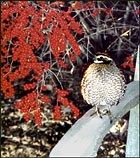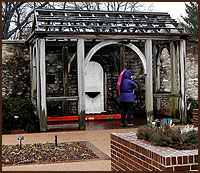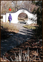 The overture has gone on too long. Days are lengthening. Rains have replaced snows. Yet spring seems reluctant to make a final break with winter. Just as the separation seems final, in comes another burst of air far colder than it ought to be. Continued cool weather has kept the Garden from dazzling on this Easter weekend when so many once-a-year visitors will come hoping to confirm the arrival of spring. Tulips are up far enough to the mark the spots where they were interplanted with pansies last fall; new daffodils are beginning to bloom replacing the early blooming ones stuck down by the cold. (I talked with a friend who described the cold-weakened daffodils as "acting dopey." Another called the early arrivals "just too eager to please.) Still no signs of crabapples or magnolia. The early magnolias were nipped by frost and now are either completely browned-out or are blooming with a fringe of brown. Easter is tomorrow. Today the Garden hosts an "egg-stravaganza" for the youngsters. Keepers are out in the Knolls cordoning off egg hunting areas with the pink, purple, and yellow ribbons of Easter. Inside, near the entrance, kids are being registered for the hunt by elegant older women looking silly with their tiaras of rabbit ears. While kids wait in line or mill around waiting for the hunt to begin, they are entertained by a pink and white costumed Easter bunny. None of these kids will notice the delay of spring or the browned-tipped magnolia. For them, all is as it should be.This week nearly all of the fountains have been switched on. Still to come are those around the Kemper Gardens. Moving water is so much a part of the Garden that without water, a piece seems missing. Out too are the elegant earth-colored pots filled with the usual assortment of spring flowers and foliage, except for one unusual planting that I couldn't quite figure out. The pot is wide and low. A few inches from its rim a ring of lawn grass about three inches high has been planted. Pansies fill the inside of the ring. After I finished my walk, I came back to the pot again and squinted while I stared at it. Often I squint at things I don't quite get to clear clutter and get to essence. It was a nest. A circle of grass holding and protecting the big-faced pansies standing in for new hatchlings.From time to time, I get fascinated again by the museum that George I. Barnett designed and built for Henry Shaw in 1859 using a building at the Royal Botanic Gardens at Kew as a model. This morning I read a bronze plaque high on the north wall, It says that on the ceiling of the museum, "painted under Mr. Shaw's direction," is a large mural that depicts the flora of the world. It goes on to say that the mural was restored in 1930 and then the museum was reopened to the public. For as long as I've been coming to the Garden the museum building has been closed. Until today, I knew nothing about Shaw's floral mural. When I got home I went to my favorite book about the Garden, A World of Plants: The Missouri Botanical Garden. Not much there except for a small photo of part of the ceiling. In the photo were a palm dangling a stock of ripe bananas, a yucca in bloom, some climbing pink roses, and a vine of trailing ivy. In the foreground, perched on a railing, was a rendering of a peacock. From what I could tell from the photo, the mural is in need of repair: chips of paint have flecked off exposing a underlayer of white and the ceiling on which the painting was done is cracking. The museum has always been a mysterious place to me--tightly closed, yet situated in an intriguing building in a very prominent location. I wonder what the whole mural looks like now? This is the week I knew would come. The delicate white blossoms of the flowering plum trees (Prunus cerasifera 'Thundercloud') that surround the secluded Arbor of the Plum Wind in the Japanese Garden have opened. Each year I look forward to sitting on a bamboo bench under the arbor looking out at the lake while drinking in the fragrance of the plum blossoms that by next week likely will be gone. It was immediate. As soon as the automatic doors opened to the Garden, we both said, "They turned the fountain on." The Latzer fountain with its circular jets of water spraying water high into the air centers the attention of every visitor entering the Garden. More than early tulips, the return of the Latzer Fountain signals that Spring has arrived. In no time at all, we will be sitting on the patio outside the Garden Café entertained by group after group posing in front of the fountain for souvenir photos.Two nights ago the nighttime temperature went down to 15 degrees with a wind chill that hovered near zero. How much damage has been done to spring I don't know yet. High on my watch list are the azalea, magnolia, crabapple, and Japanese cherries. Many of the especially prized or vulnerable bulbs in the Samuels and Heckman bulb gardens had been covered with agricultural cloth or upturned plastic five-gallon pots. Blooming unprotected daffodils were hit hard as was a patch of Kaufmania tulips that had just opened. A one of a kind: a fuzzy daffodil called 'Rip Van Winkle' was in flower in a sheltered part of the English Woodland Garden. It is yellow like an ordinary daffodil, but there the resemblance stops. Instead of petals and a snout, Rip looks like a regular daffodil that has been put through a shredder. Pat thinks 'Rip Van Winkle' is just right for a name. Forty years of sleep with no chance to see a barber. The remaining winterberries in the Bird Garden have attracted a flock of a dozen or more Cedar Waxwings. We had at other times seen pairs of them, but were startled to see so many, so close. While neither of us are birders, we did see the distinctive tip of yellow at the end of their tails and the touch of red on end of their wings. We don't know enough about birds to know what these markings or this sighting may mean.Another rare sighting was a group of teenage boys and girls 