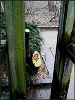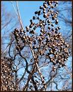 It have done their work. Vistas that were hidden by small trees and green shrubs have appeared. The pergola near the Linnean House is now almost bare. The vine that bore the wisteria up it's sides and though the slats in its top has been drastically cut back. The seed pods that dangled down like pendant on a chandelier as recently as last week are gone. Near ground level, there is a fresh cut where a vine three inches across was cut. I always admire the quality of the pruning done in the Garden. Cuts are always sharp and clean with a slope that allow the water to run-off at just the right angle. Rarely is other bark ever torn or frayed.