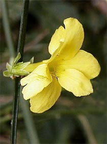 When Scottish plant hunter Robert Fortune set out to bring back plants from China for English Victorian gardens, he was warned, "The value of plants diminishes as the heat required to cultivate them increases." With that admonition in mind, Fortune brought back several shrubs from northern China that bloom in late winter. I have been watching two of plants introduced by Fortune: the Winter Honeysuckle (Lonicera fragrantissima) and Winter Jasmine (Jasminum nudiflora). Neither have blossoms that stun, but both offer flowers with heady scents that smack of summer. I know of three places in the Garden where the Winter Honeysuckle grows. Winter Jasmine grows in two: outside in the Chinese Garden and inside under glass in the Temperate House. Two weeks ago the cream-colored Winter Honeysuckles had just started to flower. Then a week of temperatures near zero made them wait. The Winter Jasmine in the Chinese Garden has just begun to set buds, but bright yellow flowers already have begun to open on the shrub inside.