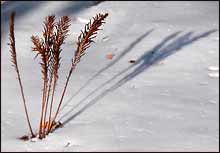 Snow covers the browns of the Garden ground giving prominence to anything taller than three inches. It's a perfect day for taking pictures, but with a sub-zero wind chill I can understand why folks with barrel lenses prefer to stay indoors. The annual orchid show that opened today seems more exotic, lively, and colorful than the shadow of a cinnamon fern on the snow.