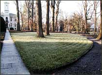 The garden column in the weekend newspaper says that now is the time to trim liriope. Their scraggily clumps of helter-skelter grasslike leaves that have lasted the winter need to be cut to make way for the tufts of new leaves that will soon begin to push up. I needn't bother because the rabbit that is wintering under my deck has already pruned my liriope leaves to a goat-like height. The Garden though has two plantings of liriope, far too extensive to leave to rabbits: one is in the Japanese Garden and the other is in the Mausoleum Garden just west of the mausoleum that founder Henry Shaw had made for himself. This morning we found that the liriope patch in the Mausoleum Garden had just been trimmed - likely with a weed whacker. With last season's dark, green leaves gone, the plot now has that yellow-green look of an early spring lawn.