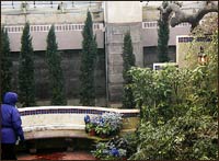The installation of a new heating system in the Temperate conservatory seems to be finished. To make room for the installation of the new equipment, the tall Italian Cypress trees that lined the south wall were cut to the ground. Nothing but stumps remained while the work was being done. Then about a month ago, ten new Italian Cypress (Cuppressus sempervirens) trees arrived. They stayed in their pots, out-of-the way of workers who were putting the finishing touches on the heating works. Today the new trees have been planted in place - spires that are about half as tall and broad as the trees that were cut. As a visitor to this Garden, I see only the result of decisions that the keepers of this place make. Their debates and their reasoning are hidden. Still, I will miss the tall old trees with their ample middle-aged spread.