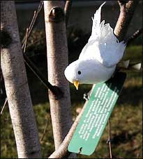 This week, I saw other twist on this kind of added recognition by a donor. In a Manchurian birch tree near the Lehmann Building, I saw that an ornament of a white dove had been clipped next to the green tag metal placed there by the Garden keepers. I understand the need to make the person that the donor champions stand out, but I dislike having works of nature turned into billboards or roadside shrines.