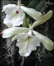 Back indoors, the botanical garden’s annual orchid show has opened. The show features about 800 of this botanical garden’s collection of 8,000 plants. The orchids are scattered in a naturalistic looking setting that has visitors looking up, down, and at eye-level. Some of the orchids are close enough to the pathways to give even those of us with cheap digital cameras a chance to get close-up pictures.The orchid display seems meant more to dazzle than inform. Apart from a label that identifies each orchid, there nothing to point visitors to the “rare and unusual plants” that garden says it has in its collection. Even so, there’s joy here. The exotic beauty of the shapes, colors, and sizes of these flowers blooming in the middle of winter will bring me back week after week even though I have meaning to stick on the splendor. |