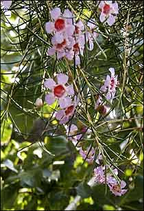 Inside the Temperate House, the Wax Flower (Chamelaucium ciliatum) tree is in full bloom. In this Garden the Wax Flower blooms only under glass. In Southwest Australia, it's an outdoor plant. The small tree (or large shrub) sets on thousands of flowers that hang like tresses on limber branches of soft needles. The wedge-shaped petals look like pieces of a pie cut for five. Web sources say that florists like to use the flowers as fillers in bouquets because they can last up to three weeks without drooping or fading. A winning combination - the ephemeral look of a peach blossom and the toughness and longevity of a winter tomato. Outside again, the first rhododendron blooms. It's a Korean rhododendron (Rhododendron mucronulatum) that flowers in classic magenta. The shrub is sheltered from the north and west winds and gets plenty of sun from the south and east. Because it is planted near the doors that exit from the entrance hall, it gets pointed at by many visitors eager to confirm that spring is close at hand.What two weeks ago the Garden would reveal only to those who looked with care, it now shows to even casual visitors. Days of long soaking rain that fell from warm skies have drawn out armies of blooms in places where two weeks ago there were only a few scouts. Hundreds of snowdrops are blooming above the cover of ivy in the Mausoleum Garden. Witch hazels (including my favorite 'Arnold's Promise') perfume the wind. Shrubs of winter honeysuckle (Lonicera fragrantissima) have recovered fully from the hard freezes that browned their buds and now are covered with fragrant creamy white flowers. Crocuses have begun to open in the lawn where 5000 new bulbs were planted last fall. The warmer microclimates in protected sunny spots have even cajoled a few early daffodils to open. Everywhere bulbs of are twisting and poking their way out of the ground, part of the 84,000 new spring bulbs that the keepers of this Garden planted last year. Inside, protected by glass, new camellias continue to bloom. Every week I seem to have a new favorite. When I look at camellias I ignore their names, since I have no hope of growing a camellia or ever seeing one any landscape around here. Instead, color, shape, and size - the aesthetics of the blooms - are far more important to me. This week my wife discovered this white camellia that no judge would deny a '10.'At the east end of the glasshouse a rare yellow camellia (Camellia chrysantha) that we have been watching for months has finally begun to flower. The flowers are small and face down. They grow on a low-lying shrub that needs props and supports to keep it off the ground. This easily ignored plant is made remarkable only because its flowers are not pink, white, or red. The prickly balls of the sweet gum trees (Liquidambar styraciflua) are falling. The garden keepers must have used a leaf blower to drive them from the walks where they like to wait hoping to turn some visitor's ankle. A reader on the GardenWeb, a question and answer forum where gardeners ask and answer questions for one another, asked what sweet gum balls could be used for. "Make them into ornaments or use them on wreaths," most people said. But I'm not sure I want to string my tree with garlands of spinney balls even if they've had a coat of gold spray paint and a drizzle of glitter. My neighbor told me that because they decomposed so slowly the balls could be used as drainage material in pots instead of clay shards or Styrofoam peanuts. I wonder if anyone on E-Bay would bid on a package of them if I included a slip of how-to-use-them suggestions? Hellebores and pussy willow are two of my late winter favorites. Now in the same week, I see both. The pure white upright Christmas Rose hellebore and the rose magenta of the retiring Lenten Rose are both in flower in the English Woodland Garden. Pussy willows are bursting from the new trees in the Japanese Garden and from the suckers that spouted from a knurled, rotten tree that was cut a few years ago.Trees - tall trees -- that flower in winter are startling because they are so unexpected. While the weather is still too cold to risk showing leaves, apricot trees are dressed in delicate whites and pinks. Each flower is small and fragile looking, but when they are massed against a blue sky, the effect is dazzling. |