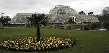 There is a wooded place I know where each Spring I know I will find vast colonies of dogtooth violets (Erythronium americanum). Even when they are not in bloom, their leaves, mottled with purple and maroon, are a treat to see. When they do bloom, their nodding lily-like flowers are always yellow. Until today I thought that all dogtooth violets were yellow. Here at Kew though I saw a colony of dogtooth violets that were a violet or lavender color. Same genus-different specie. These were Erythronium dens-canis. The Flora encyclopedia says they native to Europe and Asia and may have white, pink, or lilac flowers, but never yellow.Botanical Gardens seem fond of growing curious plants that cause people who would never go to botanic gardens to visit. I found two such plants in the Princess of Wales Conservatory at Kew: the Titan Arum (Amorphophallus titanum) and the Century Plant (Agave americana). ![]() The flowering of a Titan Arum anywhere in the world draws crowds. When one flowered at Kew in 1996, some 49,000 people came to see the six-foot tall flower and to be joyfully repulsed by its overpowering scent of rotting flesh mixed with shit. I counted six Arums in various stages of development today. In 1889, the growers at Kew were the first to coax these stinkers to bloom in captivity. Now they seem to have mastered the technique: three Titans bloomed in 2002 and another opened last year. There were no signs of a blossom stock on any of the plants I saw and nor did I read about any predictions of a new rotter on the way. Still even without the perverse appeal of seeing a flower, I did have a chance to see the mossy-looking mottled trunk (or stem?) that rises six feet to support a much divided single leaf that emerges after a Titan flowers. My timing was better for the Century Plant. The Century Plant is a desert succulent with pointed puffy blue leaves that reach out four- or five feet from a central rosette. Web sources say that when the plant is at least ten years old, it sends out a stock that may grow up to thirty feet tall before sending out a splay of yellow flowers. After flowering and setting seeds, the whole plant dies. In 1991 when a Century Plant bloomed at Kew, a pane of glass had to be cut from the roof of the Conservatory to allow the stock to continue growing. It has happened again. Another Century Plant is outgrowing the glasshouse and a pane of glass has been removed to let the stock continue to grow. Thank goodness the weather is warm. I wonder what would have happened had the plant taken a notion to flower in winter?The weather today is remarkably unsettled. Within the four hours we spent at Kew, the sun sometimes made walking uncomfortably warm. Then the clouds would move in and the wind gusts made a coat and scarf essential. Then a misty rain started followed by a driving rain with lighting and thunder. Once there was even a hailstorm. Then as though all was forgiven, the sun came out and the cycle began again. Timing again: we were inside the Orangery watching the hailstorm over a lunch of tomato-carrot soup and hot tea. Kew is nearly at the same latitude as Labrador. Even though I know about the moderating effects of the Gulf Stream current, I still am surprised when I see camellias in bloom along the Garden walkways and palms rising up in unprotected lawns. The palms that grow best here are called Windmill Palms (Trachycarpus fortunei). According to an article in the journal Palms these palms were spotted on the Chinese islands of Chusan (now Zhousan) by plant hunter Robert Fortune while on one of his plant collecting trips to the East. Fortune sent some seeds and young plants back to Kew in 1849 where they were nurtured in the new built Palm House until the Garden's keepers kicked then out when they realized they were hardy enough to make it outside on their own.