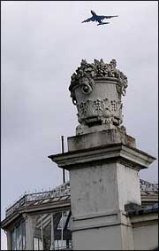 Kew is situated along the final approach to London's Heathrow Airport, one of the world's busiest long-haul airports. Every minute or so an airplane with ten-abreast seating enters the sky above Kew's expansive green lawns. Depending on your point of view, the planes are either exciting diversions or intrusive interruptions to the Victorian formality of the Garden. None of the official materials published by Kew ever mentions airplanes or noise they send from the sky. Ironically, in their rules of Garden etiquette they do say "to preserve the peace and tranquility of the Gardens, so much enjoyed by visitors, the use of radios and cassette players is not permitted."The beds inside the Palm House are being dressed with a fresh layer of mulch. Like many botanical gardens, Kew makes its own mulch. The Garden's home-brew compost program began in 1989 over a concern about the effects of peat extraction on wildlife habitats. A sign in the Palm House says that the Garden produces one hundred tons of plant waste every week. They save and grind the plant residue and then mix it with twenty tons of horse manure collected from Queen's Household Calvary and London Metropolitan Police. In from ten to twelve weeks, the Garden has a batch of compost ready to be mixed 50:50 with bark shavings and then spread as mulch on the garden beds.