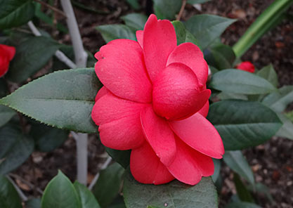 This is the only camellia I’ve ever seen that has a true rose-red color. It’s named ‘Jinqu’ (Camellia edithae) and it’s just started to bloom in the Linnaean glasshouse. The flowers haven’t fully opened but they still have an elegant look about them. While ‘Jinqu’ wouldn’t survive outdoors in our winters, it does well a bit further south. In a public garden in Austin that has an outdoor planting of ‘Jinqu,’ I saw this post written by the keeper of the camellias at the garden: “[the first blossom] on this plant was picked less than an hour after it opened. And the next flower AND THE ENTIRE BRANCH IT WAS ON was ripped from the plant shortly after. In order to save the plant from certain destruction, I was forced to remove all the rest of the buds. I will do the same thing again this year if people will not respect this plant and this garden.” I’m certain the keepers of the botanical garden where I walk also have similar tales to tell. It seems that for some visitors, experiencing beauty isn’t enough unless it’s possessed. I’m hoping the blooms on the ‘Jinqu’ growing here will drop naturally when they’re spent.