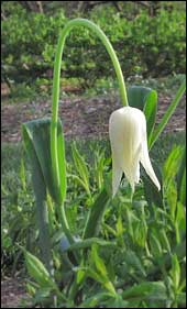 This morning though it was the basil leaves I noticed on some alliums yet to bloom or even to send up stocks. The alliums, planted in the new Ottoman Garden, are named Allium karataviense (Turkestan Onion). My garden catalog of spring bulbs says that each of these alliums will form a ball of about four-inches across atop a stock of only four- to ten inches high not much by giganteum standards. But for this allium, size doesn’t matter. It’s the foliage that counts. Their meaty blue-green leaves are broad and deeply etched with long veins. Then to top that, each leaf is edged with a tracing of a watered-down merlot color that deepens and expands as the leaves mature. Too bad this is an allium instead of a hosta. Then I could enjoy it until frost.