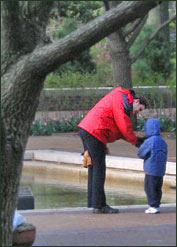 I wonder why I’m here this morning. No one else is. Even the birds are perched quietly in trees and on benches, feathers fluffed to stay warm. A visit to a botanical garden early on a raw, wet Saturday morning like this one would never top anyone’s “I need-to-do-this-before-I-die” list. That’s especially so because the colors of high spring have been browned and muted by last week’s prolonged freeze.
