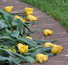 Where have all the flowers gone? The visitors too. People around here have long linked Easter weekend with a visit to the botanical garden. Lapsed and jaded gardeners along with folks who would be hard-pressed to tell a tulip from a hyacinth come here to celebrate the return of spring. Not this year though. Unjustly cold temperatures have pushed wind chills into the teens this morning and more of the same will continue at least through Easter. Maybe it’s just as well that visitors are making themselves scarce because Spring cried uncle this morning.