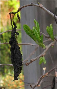 Recovery from the record-breaking freeze in early April has begun. The first growth of leaves at the tips of twigs and branches is gone for good, but a fresh surge of green has begun to sprout from nodes further down. The official word from the horticultural folks at this botanical garden is that with time and patience, most plants will recover. They say, “You may notice a slight decline in appearance before your garden looks ‘normal’ again, but this is only a temporary setback.” Wonder if “slight decline” to a botanist is like “slight discomfort” is to a doctor?