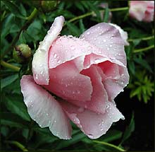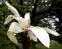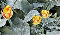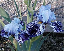 Each year about this time, the leggy pansies and the remnants of tulips are cleared from the display gardens along the main walks of the Garden. The plantings that replace them will stay until late September or early October when the mums take their turn. The Garden keepers use bedding plants in their summer plantings. So as the season matures, so will the small plants. By August, none of the soil will be visible. I can only guess how the Garden keepers choose plants to feature in these most visited garden areas. Those that thrive in sun and heat would seem to have an edge, as would those that add vivid color or contrast to surrounding plants. Given these considerations, the Garden planners did as they did last year. They chose a tropical look for the summer beds -- bright colors and intense contrasts, often both within a single leaf. Except for some pentas that will flower a bright red (Penta lanceolata 'Butterfly Red') and a salvia that will bloom an electric blue (Salvia guaranitica 'Black and Blue'), the beds will get most of their color from the shape and coloring of plant leaves. For contrasting or freckled color on the same plant, the beds use three plants: red caladiums streaked and fringed with green ('Red Flash' and 'Florida Cardinal'), Caricature plants (Graptophyllum pictum 'Tricolor') with green leaves accented with white marbling, and pink ribs, and the fine lobed multi-colored leaves of the 'Trailing Duck's Foot' coleus. For darker contrasts, the beds use a tall burgundy-leafed sugar cane called 'Pete's Smoke' and a fleshy-leafed purple creeping spiderwort called Tradescantia pallida 'Purpurea.' If all goes as planned the display gardens ought to cause even the most jaded visitor in July or August to pause and take a snapshot. Three times last week our unwilling cat and I waited out severe storm and tornado warnings in the basement. Several of those storms brought high winds and hail. In the Garden, the hostas took the brunt of the hail damage. In some areas, the hostas looked as though they had been leveled with a weed whacker. Other hostas leaves had holes the size of the hailstone that ripped though them. Thankfully, the storm must have been brief and spotty because most hostas were untouched or only slightly damaged. Wormwood (Artemesia) is being used more and more in sunny beds to add contrast to flowering plants. The grayish-cyan color of their lacey leaves acts like the colored paper foil that florists use to make even the most humble plant a special gift. I've been looking for a plant like the wormwood that could be used in shady places. I found one this morning. It was tucked into a shady corner of an area called "The Secret Garden." The plant was a bleeding heart (Dicentrata) called 'King of Hearts.' The soft, cut leaves looked like cyan-colored parsley. It turns out that 'King of Hearts' is aptly named. It is the result of a cross between two hybrids native to the United States-- the east coast (Dicentra eximiathe) variety and west coast hybrid (Dicentra formosa) - with a rare mousy Japanese variety called Dicentra peregrina. The rich blue-gray color of the leaves comes from the bleeding heart's Japanese parentage. Flowers of the 'King' are pink and prolific, but I was more interested in the foliage. I wonder how it will fare in the hot, humid Midwest summer? A sure sign that spring is gone: The tombstone markers that identified the daffodils have been collected and are being readied for storage. Most of the tulips have finished blooming. Already their leaves have begun to yellow, shrivel, and rot. I'm sure some folks find beauty in this stage of their regeneration. I can't. Such great beauty deserves to age with grace and dignity. I wonder if tulip breeders have given any thought to making the aging of tulips more akin to the afterlife of the amaryllis? Of the uncounted varieties of tulips that were planted at the Garden this year, one remains. Like other late bloomers, a variety called 'Princess Margaret Rose' has bloomed and shattered. But unlike the others, the 'Princess' wasn't finished. After its primary stocks of large, shapely yellow petals edged with salmon were cut, the bulbs sent up secondary stems. The flowers on the secondary stems are smaller and more rounded -- more like those of a specie tulip. But the foliage is still main-season fresh, and the bulbs continue to develop more buds. I don't know whether this display is a one-season chance happening or whether 'Princess Margaret Rose,' like her namesake, is known for this kind of outlandish behavior. The "broken color" irises I was looking for last week have begun to bloom. The falls are like nothing I've seen in an iris before. Like Rembrant tulips, no two are alike in how the streaks of color flow from the beard. As if the flower colors were not enough, some of these irises also sport variegated leaves. The Garden keepers have chosen to display their collection of broken color irises in a bed nearest the main walk so that even casual visitors can be awed. The label on most of these irises identifies the breeder as "Kasperek." By poking around the internet I found that the irises came from a small commercial iris garden in northern Utah called Zebra Gardens. Kathie and Brad Kasperek operate the garden. Their website says, "The commercial garden is an out growth of Brad's addiction to hybridizing (cross pollinating two flowers to produce seeds) bearded irises and was established in 1994. Zebra Gardens is the leading source for both broken color bearded irises and variegated foliage bearded irises. Kathie handles the paperwork while Brad does the gardening and produces new varieties of irises . . . Brad has a full time job so we can afford this business." I know nothing about the passions of iris lovers, but if these irises excite them as they do folks like me, Brad will soon be able to quit his day job.This morning only a few visitors walked the Garden. I blame much of the disinterest on the weathe