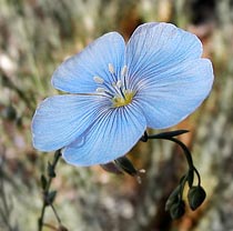Blue flax (Linum pernenne) is blooming in the herb garden. Like daylilies, each flower lasts just a day and sometimes just a morning if the day is too hot for its liking. But, the buds are plentiful so these plants should show color for quite some time. Blue flax is a plant that suffers when described rather than seen: wispy foliage, dangling buds, and a flower with a color that shimmers is about the best I can do. The White Flower Farm catalog, that gourmet menu of perfect pictures and luscious words, does better: “From May into July, this dainty personality produces a succession of one inch, satiny flowers of mouthwatering, pure sapphire blue that look specially fetching with the pink spikes of Salvia 'Rose Wine'. Each flower comes and goes in a day, discreetly dropping its petals, but the buds are so plentiful that there is always a fresh crop of blooms the next morning.”