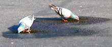 We saw two pigeons on the circular walk in front of the Shaw House. They were drinking from some puddles left from an early morning sprinkling. As we watched them, Pat asked. “Did you know that pigeons and maybe doves are the only birds that can drink without raising their heads to let the water go down?” I didn’t, but I could see that these two pigeons were sucking in water without once lifting their heads. From a web site I checked later I learned that pigeons, doves, and parrots are all members of the order Columbiform, a word comes from the Latin for dove. The web site confirmed Pat’s “did you know?:” “Columbiforms are the only birds able to drink without lifting their heads so that gravity can take the water down the gullet. They drink by immersing their beaks and sucking.”
