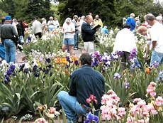 I thought of those star wars conventions where the movie fans dress in costumes to mimic their heroes. Iris fans are not as bold. They do wear t-shirts emblazed with irises and hats with buttons touting the site of the next convention, but I saw only one person who did more. He stood out with his pair of lavender-colored shoes.
