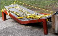 For weeks now a bench in the Japanese Garden has been cordoned off by yellow caution tape. An overhanging limb from a nearby tree snapped and landed on the bench. The sturdy bench of wood and steel now has a v-shaped slope. The ailing tree has been cut down and the limb that caused the damage has been hauled away. This morning I overheard two women talking about what might have caused the bench to buckle. Their guess was that "a too fat person must have stopped there to rest."