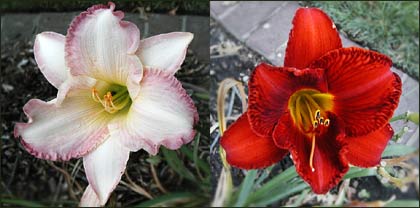 ![]() Variegated cattails thrive in the reflecting ponds outside the Linnean greenhouse. In the beds alongside are ample clumps of Variegated Eulalia (Miscanthus sinensis). Both plants have striped, arching leaves that end as a point. I got as close as I could to the Eulalia leaves. Up close, from just the right angle, the washed-green and creamy-white stripes of the draping fans look much like the pictures of the rings of Saturn that the Cassini probe sent to earth as it passed though the planet's rings. Next weekend, the botanical garden will have its annual daylily sale. This week we got a preview of some of the plants slated for the sale. During the week, a throng of volunteers will meet at the daylily garden to dig, separate, and label all the plants with sheered fans. If the digging happens as I have seen it happen before, the marked plants will be dug and the largest three or four fans will be replanted. Excess fans then will go to the sale. For diehard daylily devotees who know the significance of sheered and unsheered plants, today is the perfect day to make a list of must-have plants. Others, who don't know or care about daylilies, must wonder why the daylily garden is a patchwork of cut and uncut plants. A sign near a line of caution tape that blocks the entrance to the herb garden says "Cicada-killer wasps have temporarily taken over the herb garden." We saw some wasps sunning themselves on a stucco wall. Squads of them also were making low-level passes over the beds of basil and rosemary. The wasps are big: as long as adult's thumb. They look and act menacing, but they rarely sting. The male can't sting. The female can, but won't unless it somehow gets pinned against a person's skin.According to the sign, the female wasp digs a long tunnel-like burrow in the soil. Then it flies off to find a cicada. When it does, it paralyzes the cicada with a sting and takes the immobilized cicada back to the burrow. Then the wasp lays an egg on the cicada and seals the cicada and egg in a compartment. So it goes until the tunnel is filled with nine or ten chambers of cicadas and wasp eggs. "A cicada killer dragging a large immobilized cicada over the ground to its nest is an impressive natural event" says an article written for the Missouri Department of Conservation. Unless I cross the caution tape though, it's a sight I'm not likely to see. Cedar-apple rust has infected a swath of crabapple trees on the east side of the Japanese Garden. The leaves have turned bright yellow. Their surfaces are covered with dozens of small shapes that look murky cells. Circles of oranges, rusts, greens, and browns surround their dried-blood colored centers. The most colorful leaves are the ones that have already fallen. The keepers of the Garden probably quickly see past the beauty of the shapes and color of the leaves. Likely they think more about whether the trees weakened by losing their leaves before they ought to can withstand the winter.Last week the water level of the lake in the Japanese Garden was down a foot or more. This week it floods its banks. The lake has circulation problems. Since the equipment is still here, the problems have not been fixed yet. Until they are, the lake will rise and fall with the weather, not with pumps and regulators. They have arrived earlier this year. The resurrection lilies (Lycoris squamigera) have hastily put up stocks and have begun to bloom. In other years, I've happen upon them when they were in full bloom. Then their petals were scrolled open and they were an expensive-cosmetic shade of pink. This early morning I saw the lilies just after they opened. The young lilies glow from their centers and then give way to deep pinks and wispy blues.I've looked at too many pictures of daylilies on too many web pages. I noticed that both those who sell them and who buy them like to pump up the color in the pictures they show off. In taking my own pictures, I find that sometimes my digital camera and my eyes don't agree on what color a daylily actually is. ![]() Because I have the last word on the matter, I try to bring the camera's image more in line with what I think I saw. This morning though I saw two late-season daylilies whose colors the camera and I could agreed upon. One of them, 'Susan Weber,' could have slipped unnoticed into a colony of resurrection lilies. The other flower had orange-red petals with vein-like tracings. The developer, who surely didn't give much thought to marketing possibilities, called it 'Blood Flow.' It's too late to add these two beauties to the list of my dozen favorites for this year, but as late-season attention-getters, these two are standouts. This part of the Midwest is outside the cicada belt where billions of the insects emerged this summer. Here, instead of the hoards that appeared on the East Coast, we have what are called the annual or "dog-day cicadas" because they usually begin emerging in late July. I saw the hull of one of these dog-day cicadas fastened to the knobby bark of the enormous Armur Cork tree growing just north of the daylily garden. I've seen these empty brown shells before, but not in the Garden. But aside from thinking how odd they look, I'd never given them much thought. It turns out the shell I saw belonged to a cicada nymph that lived underground while feasting on the sap of the small roots of the Amur Cork tree. When the adult was ready to break out of the shell, the nymph climbed the tree and dropped anchor on the bark. Then the casing of the shell split open just behind the nymph's head and the adult cicada worked its way out. John Dwiggins, a North Carolina homeowner with a video camera, took a series of intriguing pictures of a cicada in his backyard as it slowly worked its way out of shell.Soon after the adult emerges, the love songs begin. The male flies to a sunny tree and sings. A female that likes the tune flies over, they mate, and then the male keels over and dies. The female then lays 600 (give-o
