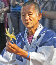 I can’t count this daylily that’s blooming in the Daylily Garden as the last bloomer of the year. It wouldn’t be fair because I’m certain this heavily ruffled, golden fringed very trendy daylily ought to have bloomed in July. I think it’s blooming now because some savvy gardener willed it to and then planted it out here for us visitors to enjoy. This daylily is such a recent arrival that it doesn’t even have a name plate yet.![]() All of the grassy areas in the botanical garden were aerated last week. The work must have been done after the heavy rains on Wednesday because the cylindrical plugs of soil extracted by the aerators haven’t lost their shape. Grass seed has also been sown on the bald patches of the lawns and sod has been put in place along the sides of walkways worn down by crowds of summer visitors. Squirrels are everywhere. They’ve nearly polished off the not-yet-ripened acorns from the saw-toothed oaks in the entry plaza. They’re biting the stems off the softball-sized Osage oranges and then picking at the fallen fruits. The pawpaws in the English Garden are gone. So is every one of what thought would be the most the abundant crop ever of Japanese persimmons in the Chinese Garden. A few years ago the ripe persimmons lasted long into the fall. Here’s a picture that I took in mid-November 2003 of the fruit that was on the same trees that are now bare. I don’t know what the Garden is doing to manage their growing population of squirrels. On their website they maintain a c’est la vie attitude, “Unfortunately, little can be done to control squirrels.” They go on to say that relocating squirrels, making the surroundings less attractive to them, and repelling them with pepper sprays all have their shortcomings. While the garden’s website doesn’t specifically mention it as a control method, it does show a picture labeled “natural squirrel control with fox kit.” For several years the garden did have a small number of red foxes in the English Garden. But, a keeper recently told me that all the foxes are gone now. So what’s left? There’s a rogue white cat that I see wandering the garden once in the while, but it’s more likely to go after easy preys like birds than to tussle with a squirrel.Back in 1997, the botanical garden used another way of keeping down the squirrel population they shot them. They stopped when an article in the newspaper exposed the practice. A garden official admitted "I hate like hell to have the story out - but it's the truth." I don't know what else to say." He added, "We've stopped [but] what we'll do in the future, I don't know . . . This is a museum, and they come in and eat our exhibits." From what I can see, the cease fire holds and the squirrel are winning. In these more conservative times though, I wonder if there’s a stronger constituency for resuming the war. I spotted the first autumn crocus (Colchicum autumnale) of the season this morning in the Ottoman Garden. I’m hardly the first to notice their September flowering though. In the 16th century Gerard wrote in his Herball, “The floure of Saffron doth first rise out of the ground nakedly in September, and his long small grassie leaves shortly after.” Most years I think of how flimsy and short-lived the crocuses are. It’s rare that I see them blooming and upright at the same time. This year because of an article I read last week, I look at them differently. The article said that researchers have known for a long time that a chemical in autumn crocuses has anti-cancer properties. But because that chemical can’t discriminate between cancer cells and healthy cells it hasn’t been used much. Last week a cancer research institute in England reported that they were able to alter the molecule of the crocus’ cancer-killing chemical so that it stays inactive until it reaches the cancer tumor. Then like a smart bomb, it detonates in the tumor killing the cancer cells and leaving the healthy cells unscathed. Right now, that’s how it works in mice. If all goes well, clinical trials will begin in about 18 months.Last week I noticed that the botanical garden had a job opening for a rosarian. When I looked today, the opening had been filled. And none too soon. The rose gardens are as poorly cared for as I’ve ever seen them. Nearly all of the beds are toothy with gaps left by untended or diseased plants. Some of the beds have no shrubs at all. Signs left over from early spring read, “Some of the roses in this bed have died due to the severe winter, Even though they look like they’re suffering now, these roses will soon be the size of other roses in the bed.” Not! They’re still suffering. I’m looking forward to see what new leadership brings to these gardens that used to be exquisite. While I’m at it, add another thing to carp about: the All-American Rose Selection winner for 2011. It has a great name “Walking on Sunshine” and a pedigree from the rose people at Jackson & Perkins. The AARS writers say, “This rose should be an easy success for those new to roses because of its fantastic bloom production, plant vigor and good disease resistance. It produces clusters of bright yellow anise scented flowers which finish light yellow in color.” Admittedly, it’s now mid-September, so maybe “Walking on Sunshine” has seen better days. Still, I think it’s destined to be a lackluster performer in the nursery trade. Given a choice between a small yellow rose and any of the “Knock-Out” AARS winners, I’d pick a “Knock-Out” hands-down. “Mason bees” the sign beside the cylinder of paper tubes used for their nesting places says. Mason bees are native species that carry more pollen to orchards and gardens than do honeybees. The don’t make honey, but neither are they apt to sting or aggressively pursue people. I learned that female bees will lay their eggs in these hollow tubes. After each round of egg laying the female bee adds a dollo