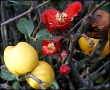 With the shorter days, it is possible now to get to the Garden before the sun rises. Beginning today and ending with the first Saturday in November, we will be able to beat the sun to the Garden. The colors of dawn still lingered when we arrived just after 7 a.m. The silhouettes of the slender dangling beads of the seed pods on the Japanese Pagoda trees (Sophora japonica) planted near the entrance to the Garden started me thinking about the Dale Chihuly installation that will be coming to this Garden in April. I’ve been a fan of Chihuly’s glass works for a long time. His chandeliers are my favorites. I saw his massive chandelier high above the foyer of the V&A Museum in London and his smaller one over the staircase in the Beach Museum on the campus of Kansas State. I regret never having seen any of the five installations called “Gardens of Glass” that Chihuly custom made for conservatories and botanical gardens. His latest installation is now at the Royal Botanical Gardens at Kew.Then a week ago that I read that Chihuly and his works of garden glass are coming to this botanical garden. Pinch me to make sure I'm not dreaming. The exhibition will open April 30, 2006too late for all but the latest of the tulips, but prime time for roses, irises, and azaleasand will stay until the end of October. Most of the glass works will be installed among the tropical and temperate plants in the Garden’s two large glasshouses. But the pieces I’m most anxious to see are the outdoor installations that will be installed in the reflecting ponds of water lilies and the flower beds. How his fantastical shapes and colors will play with those of the ever-changing plants and blooms will be fascinating to see as the seasons change. Plans for the exhibition include evening walks called “Chihuly Nights” every Thursday. In press release language, the evenings will “offer visitors unique, dramatically lit views of the exhibit in the glow of evening.” Apart from the glow of the glass, Chihuly will mean good business for the Garden in 2006. A Chihuly exhibition at the Atlanta Botanical Garden scheduled from May to October 2004 and extended to December attracted more than 350,000 visitors. A 2001 Chihuly exhibit at the Garfield Park Conservatory in Chicago drew 450,000 visitors and was extended twice. In an interview with Betsy Taylor of the Associated Press, Peter Raven, director of the botanical garden where I walk, estimates that the Chihuly exhibit will bump attendance up by 20%. The regular annual attendance at the Garden now stands at about 700,000. I think I'd better plan to arrive for my weekly garden walk at 7 a.m. as long as Chihuly is here. How do they do that? This is the only pot of mums that combines two of the traditional colors of mums into a round arrangement looks like stripes on a baseball. Were pots of budded mums forced together to make this arrangement or were the two varieties planted together in a very large pot? However it was done, it made me pay attention. This is definitely not just another mum. I like the odd surprises that fall brings. Azaleas often offer a few blooms at this time of year. So do crabapples. Last year I saw some snowdrops that fit better in January or February blooming at about this time of year. Reblooming iris begin flowering from now to killing frost. This morning the surprise was a quince (Chaenomeles speciosa) that I saw in Japanese Garden. Along side the mature full-sized yellow quinces and a few already rotted ones, the shrub displayed some maroon-colored flowers and buds. Four generations posing for a family picture.The first weekend in October: the parking lots on the East side of botanical garden are covered by four long tents filled with more than a hundred vendors and exhibitors. It’s the garden’s annual “Best of Missouri Market.” Lots of food to taste. I tried breads, scones, cookies, pastries, and pecans coated with honey, sugar, and sweet glaze. I reluctantly passed the five winery booths because the samples they offered were so slight -- their wines were served in cups that could have been used to take a dose of cough syrup. Easier to leave alone for me were all of the hot sauces, pepper condiments, and pepper-laced fruit jams and cheese balls. Hot must be hot with other visitors though because the program listed eight sellers of peppery products, not counting the booths offering hot sausages and jalapeño beef-jerkies. Aside from the food booths, the stall that drew the most crowds was the one with non-stop demonstrations of a tool called the “Nut Wizard.” Imagine an old-fashioned cage that callers at bingo games used to mix the bingo balls. Then make the cage of flexible metal and add a broom handle to it. Roll the wizard over the ground and it picks up all manner of things that used to mean a lot of bending and stooping. In the demo I watched, the Wizard was picking up sweet gumballs fast and easy. In their promo material, the sellers say the Wizard will gather “Pecans, Black Walnuts, Butternuts, Apples, Hickory Nuts, Acorns, Chestnuts, Oranges, Lemons, Golf Balls, Baseballs, Tennis Balls, Buckeyes, Marbles, Sweet Gum Balls, Hedge Apples, etc... Just about anything round or oval that is less than 4"and greater than 3/8" in diameter.” The demo must have been convincing. I saw lots of folks walking to their cars with their new Nut Wizards in tow. Of things botanical, the most impressive booth was the plant-filled stall of a grower in the middle of state named Missouri Wildflowers Nursery. The nursery says it grows more than 210 species of wildflowers that grow wild in Missouri’s fields and forests. The stall was brimming with a generous sampling of their stock in four-inch starter pots and was decorated with several jack-o'-lanterns with eyes, noses, and mouths traced in purple beauty berries (Callicarpa Americana). Outside the stall were beauty berry shrubs for sale in one- and four-gallon containers. Each of the shrubs